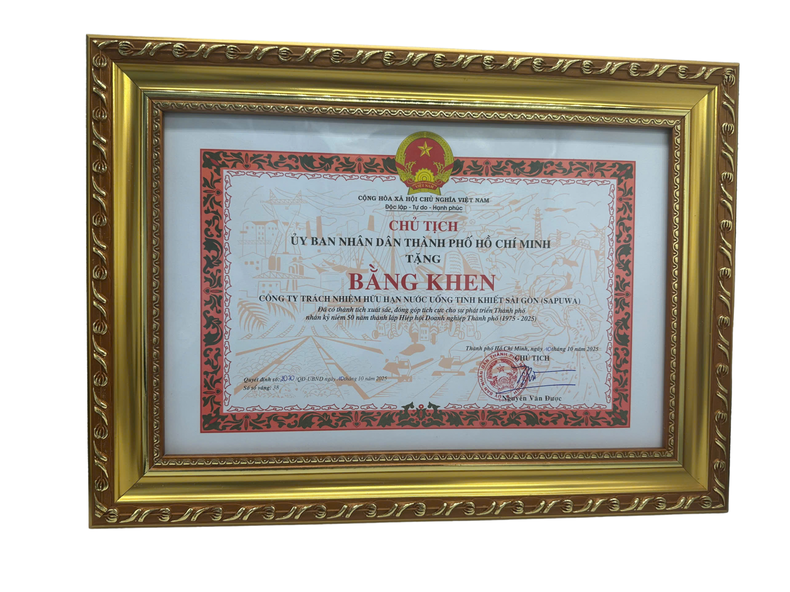 Bằng khen của Chủ Tịch Ủy Ban Nhân Dân TP.HCM vì SAPUWA đã có những đóng góp tích cực cho sự phát triển của Thành phố
