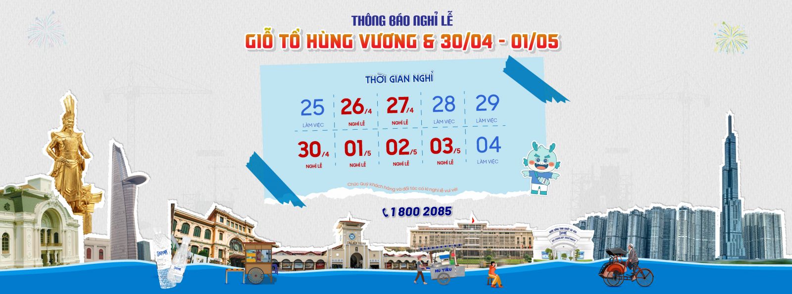 THÔNG BÁO: LỊCH NGHỈ LỄ GIỖ TỔ HÙNG VƯƠNG, GIẢI PHÓNG MIỀN NAM 30/04 & QUỐC TẾ LAO ĐỘNG 01/05
